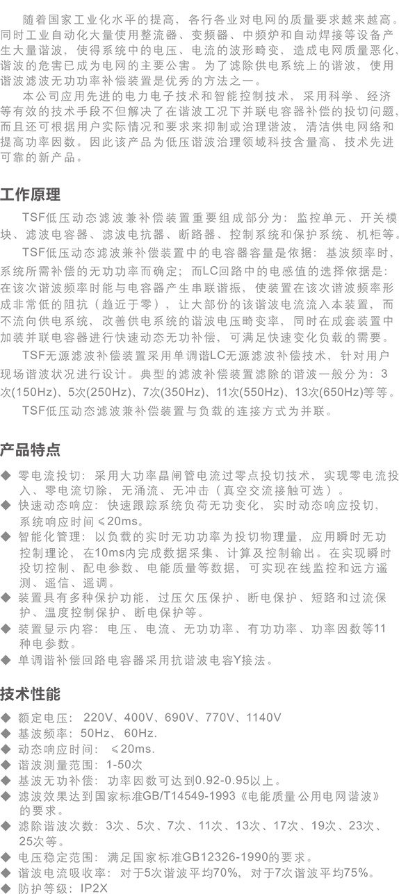 提高功率因數(shù)。因此該產(chǎn)品為低壓諧波治理領(lǐng)域科技含量高、技術(shù)先進(jìn)