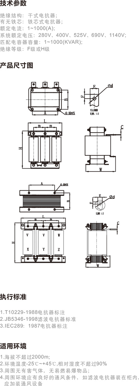 濾波電抗器與濾波電容器組串聯(lián)使用,組成LC諧振回路,廣泛用于高低壓濾波柜中, 濾除系統(tǒng)中特定的高次諧波,起到就地吸收諧波電流,提高了系統(tǒng)額的功率 因數(shù),智力電網(wǎng)污染,提高電網(wǎng)的電能質(zhì)量的作用。