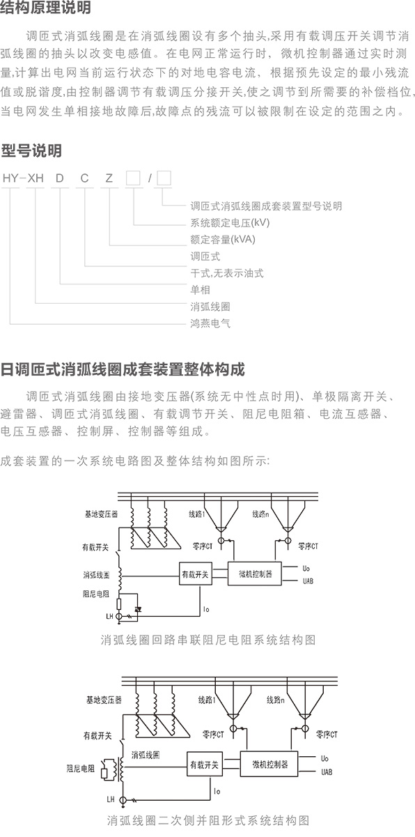 調(diào)匝式消弧線圈是在消弧線圈設(shè)有多個抽頭,采用有載調(diào)壓開關(guān)調(diào)節(jié)消
