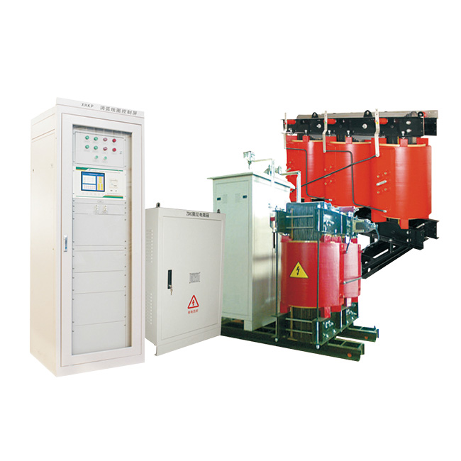 二次側并聯(lián)若干組用真空開關或晶閘管通斷的電容器,用來調節(jié)二次側電